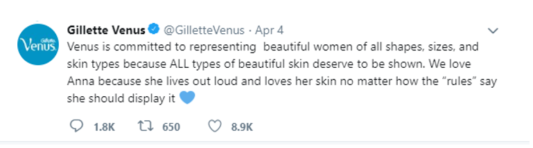 marca Gillete Venus lançou um post no Twitter que também gerou polémica em